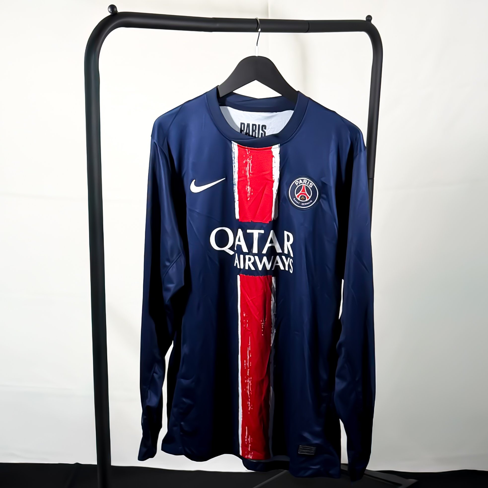 The 2024/25 Paris Saint-Germain Home jersey features the return of the classic Hechter stripe. The new design has a hand-painted, brush strokes look. It reflects a French culture of creativity.